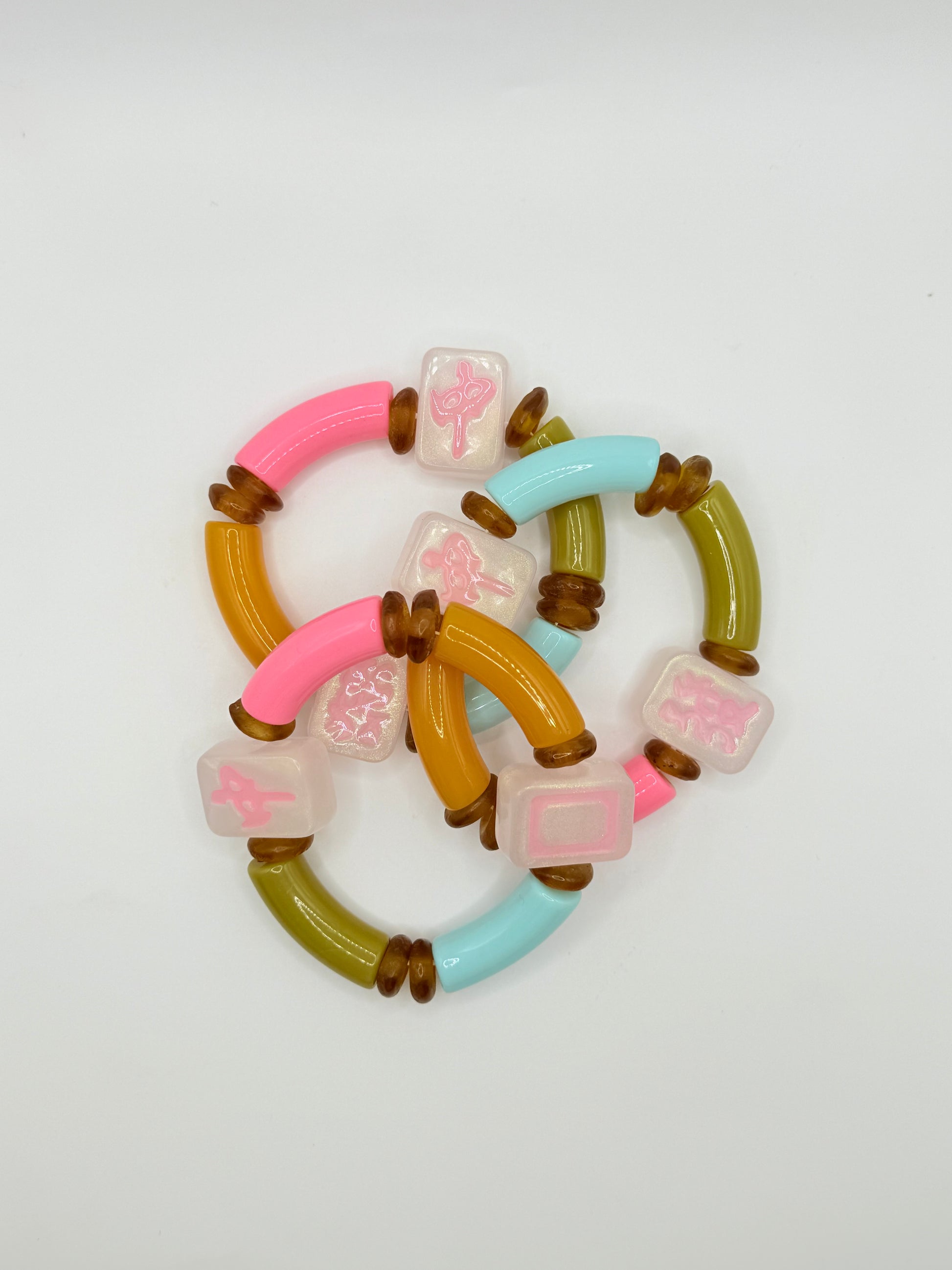 bam! dot! crack! score a winning hand with this stack! (tiles are an assortment of dragon designs)