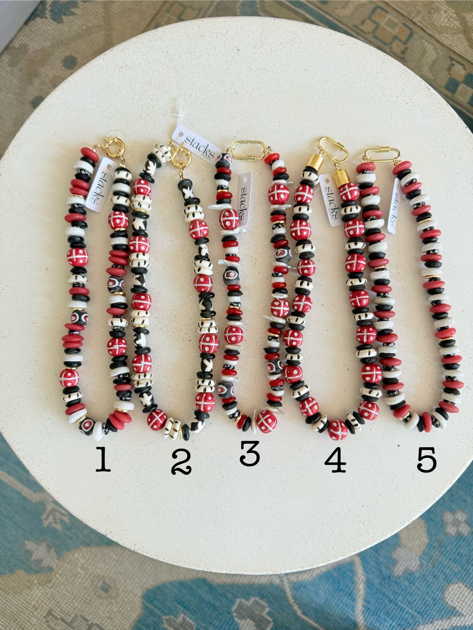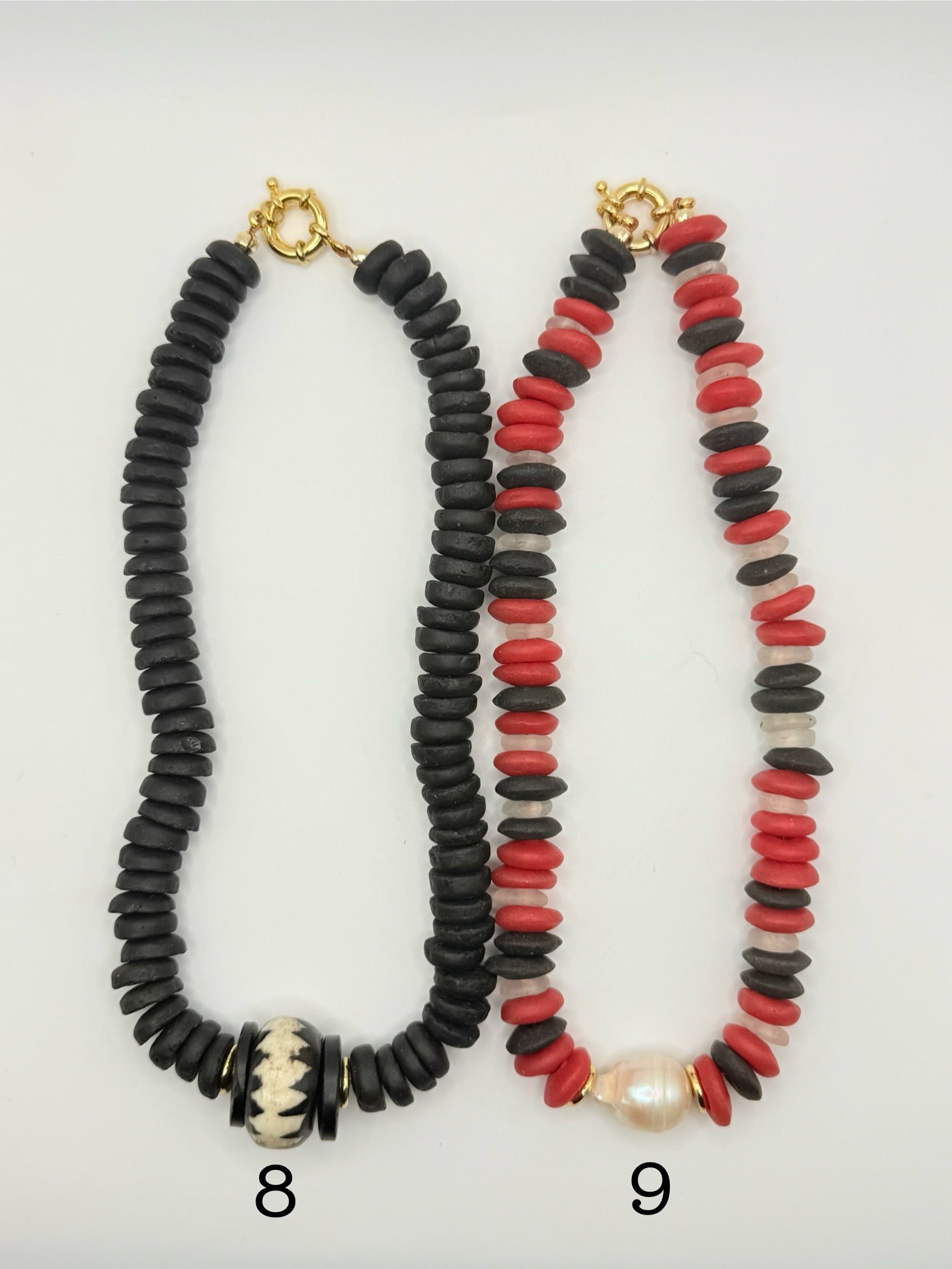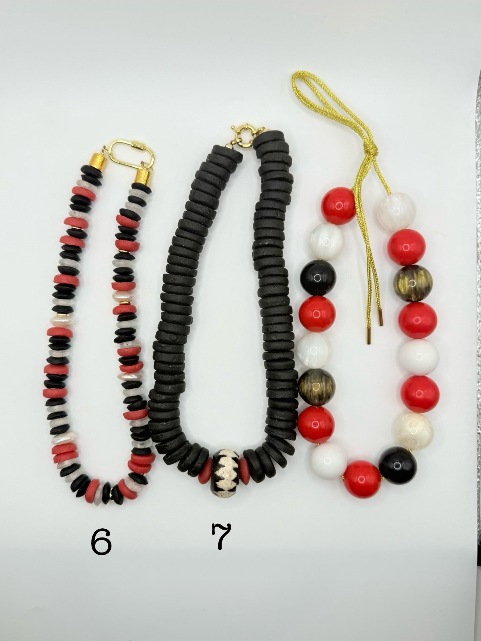 To keep your necklaces looking their best, take them off before sleeping, showering, or getting into contact with sweat, saltwater, or chemicals like chlorine, perfume, makeup, or lotions.