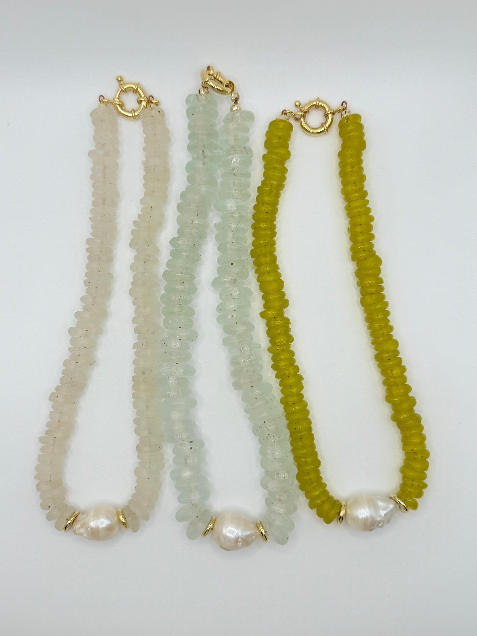 To keep your necklaces looking their best, take them off before sleeping, showering, or getting into contact with sweat, saltwater, or chemicals like chlorine, perfume, makeup, or lotions.