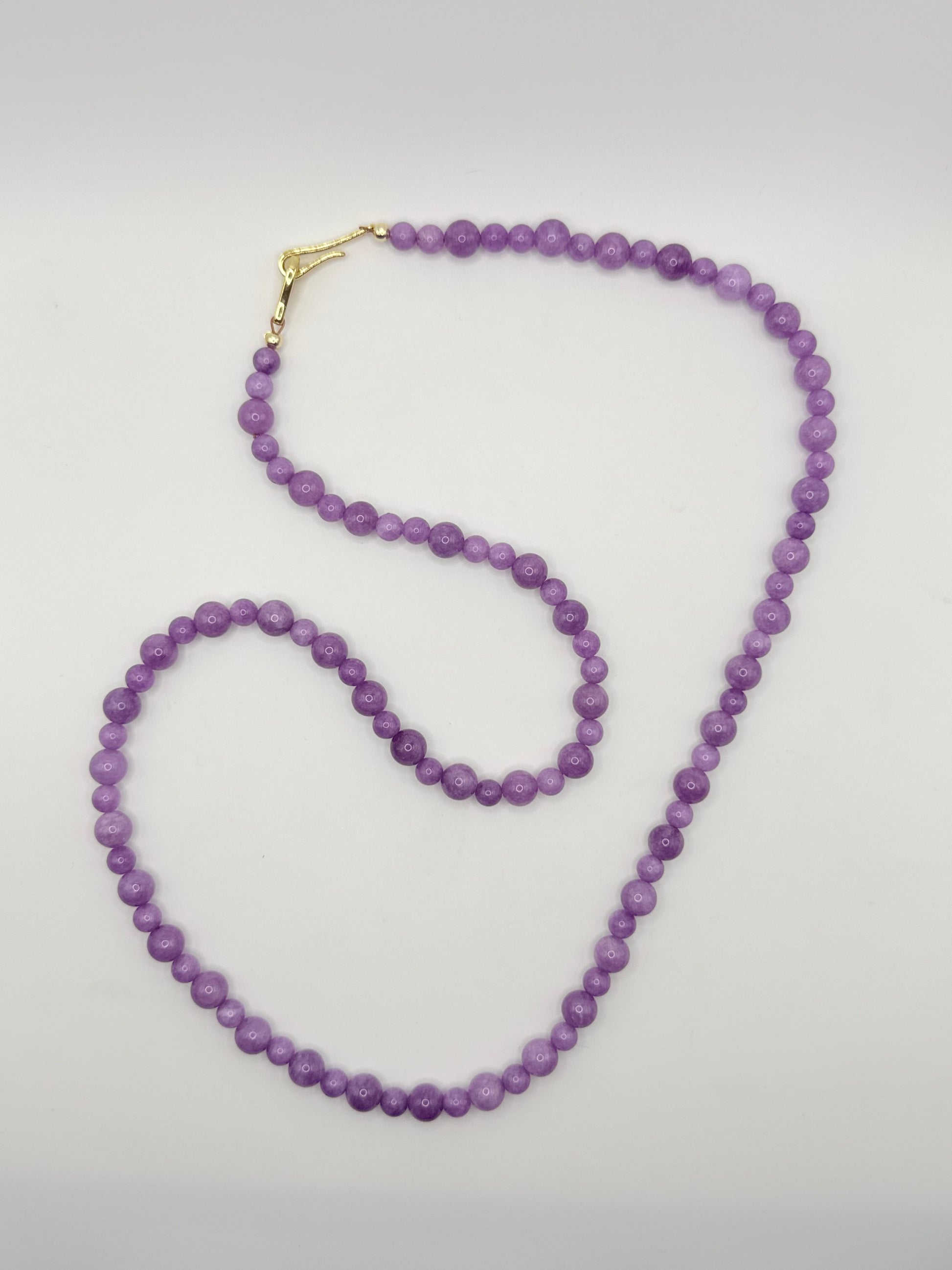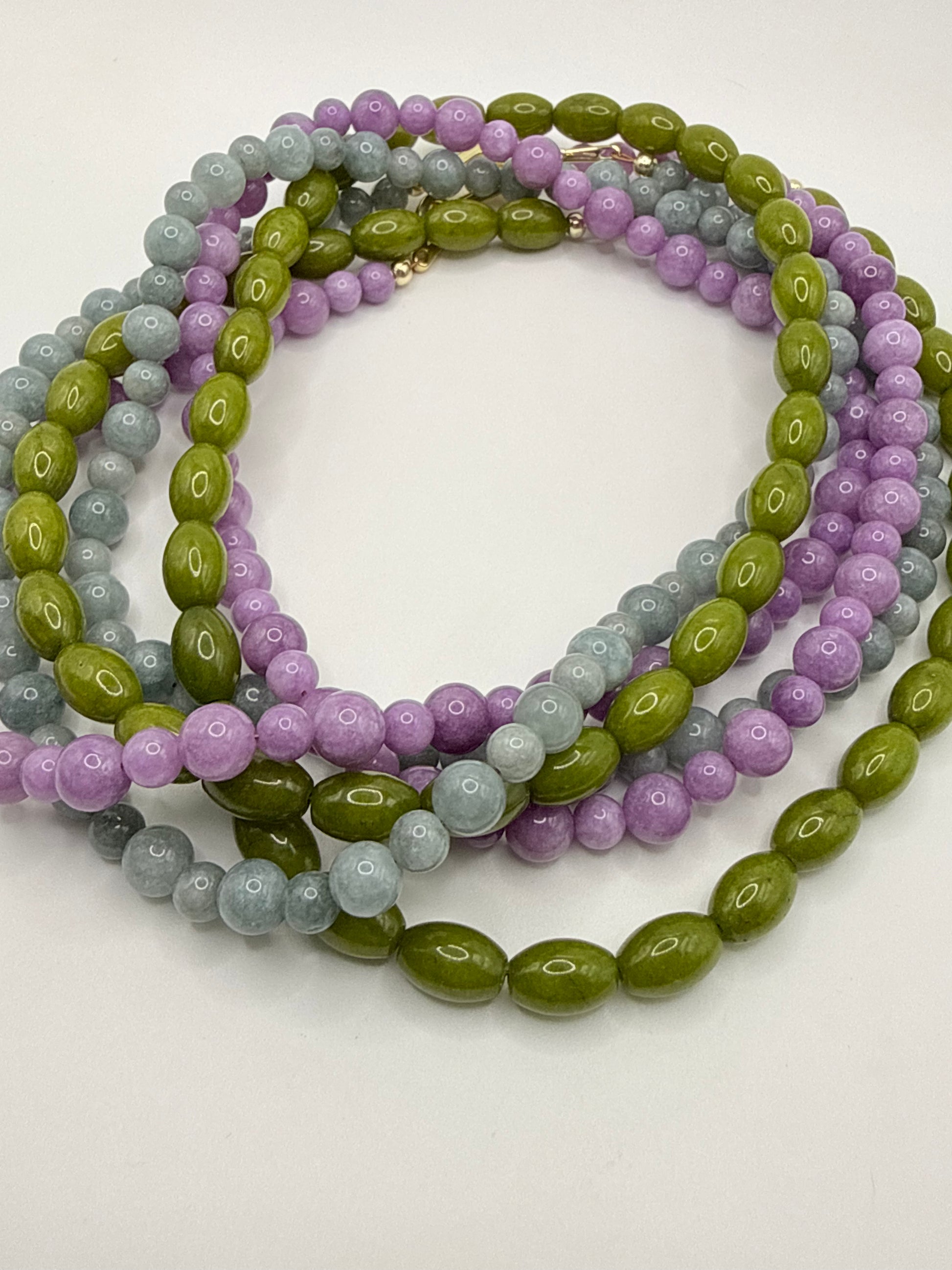 A long strand of polished stone beads in soft, versatile hues. An effortless layering piece that adds color and length to any stack.