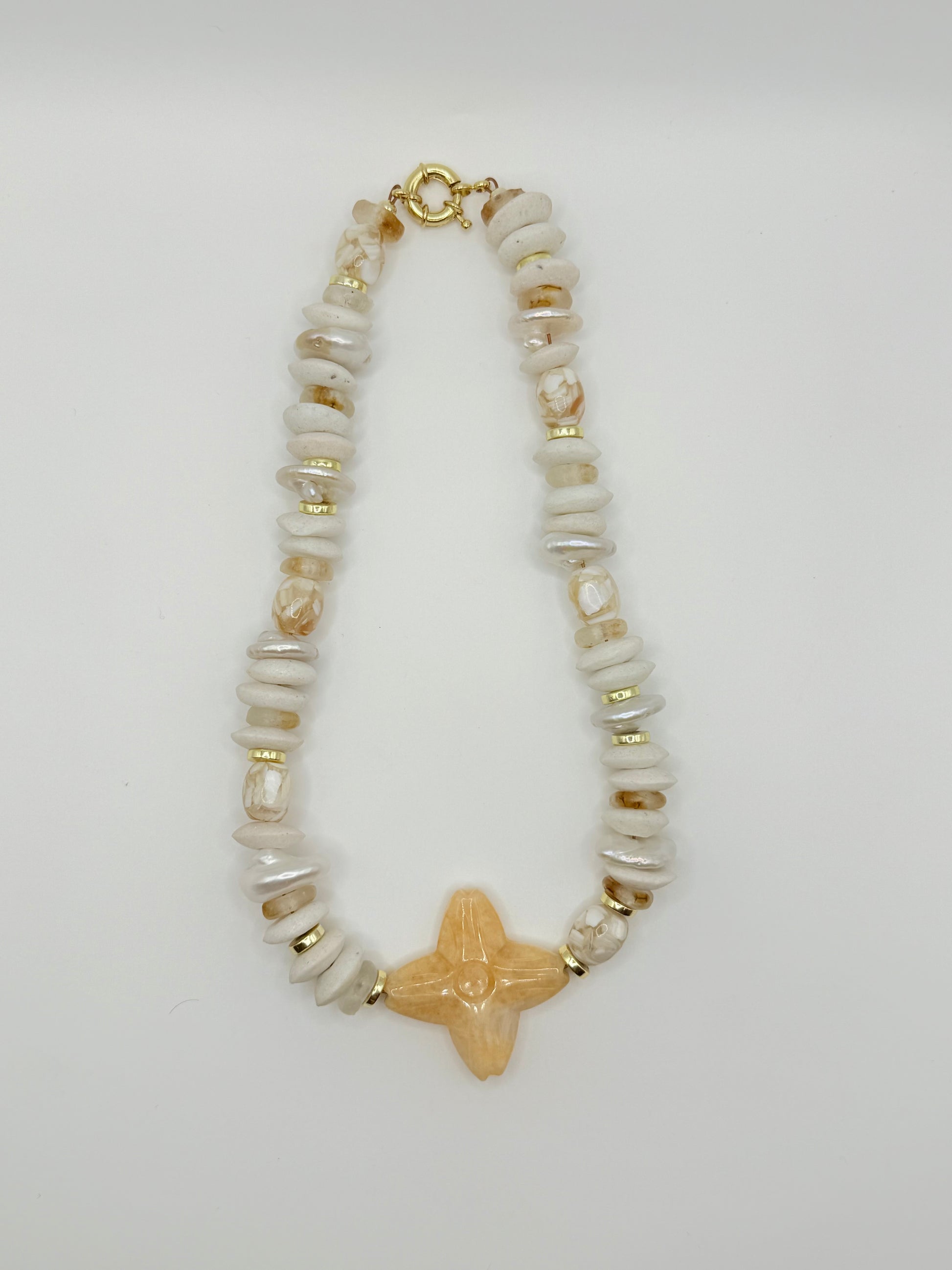 The Tilly Necklace is a playful blend of charm and elegance, featuring delicate beaded textures and signature star-shaped gemstones. Designed for effortless layering or as a standout piece, Tilly adds a touch of whimsy to your everyday style. Handcrafted in small batches, it's a timeless addition to your jewelry collection.